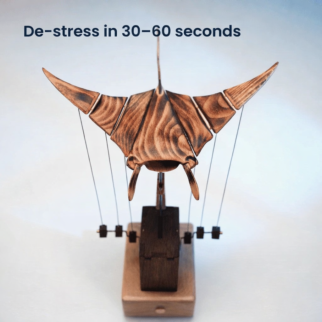Each Mariner Motion Manta Ray sculpture is made from natural wood and designed to bring calm, flowing movement into your space. The smooth mechanical motion mimics the gentle drift of Manta Ray in the ocean, creating a relaxing and eye-catching display.