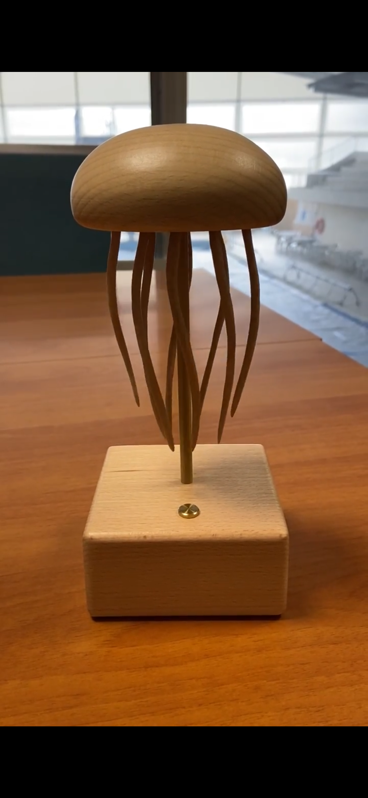 Inside the sculpture, an intrinsic mechanical system powers the gentle motion of the jellyfish and manta ray. This precision mechanism allows the figures to move smoothly in a flowing, wave-like pattern that mimics the calm movement of ocean life. The combination of solid wood craftsmanship and carefully engineered mechanics creates a unique decorative piece that is both visually striking and built to last.