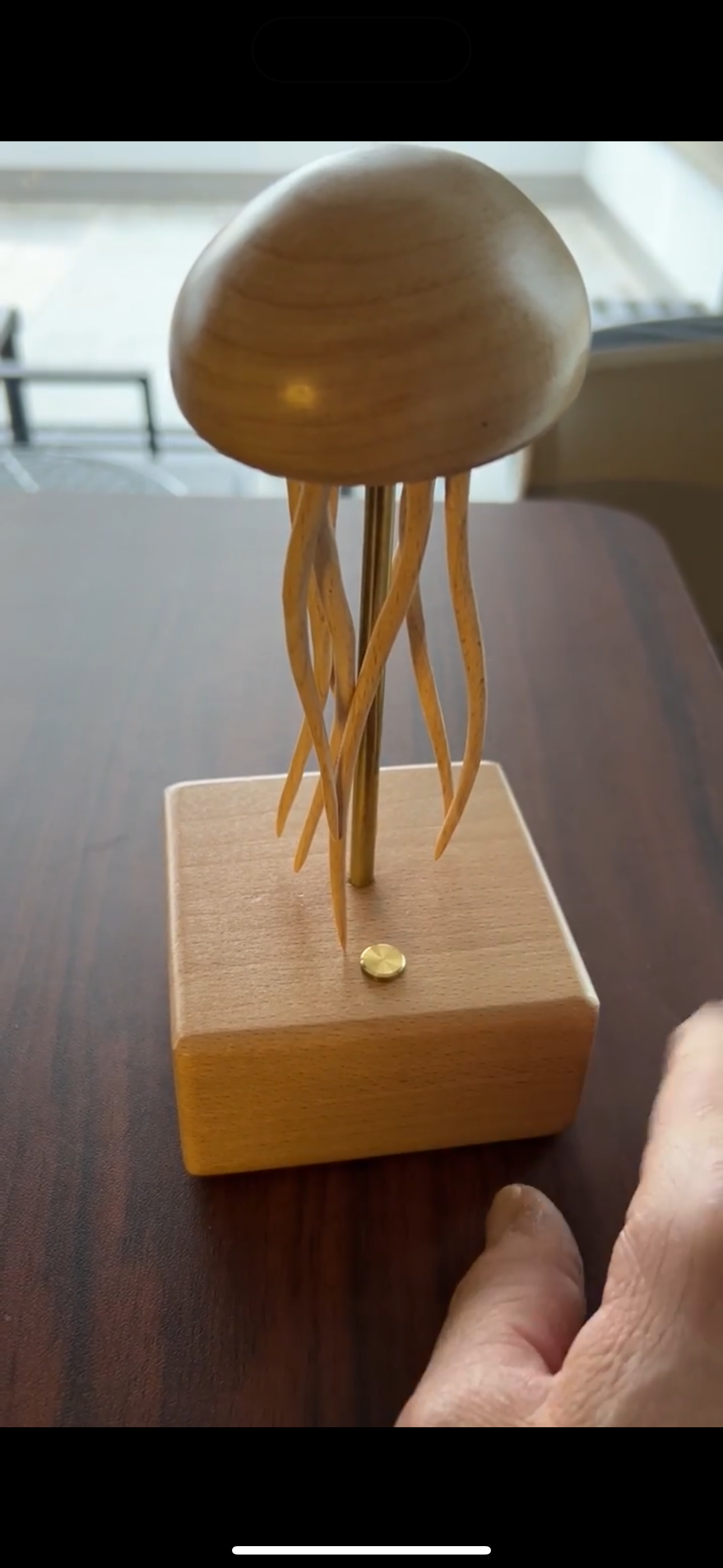 We’ve always appreciated the beauty of natural materials and the process of creating something with patience and care. Over time, we became fascinated with the idea of movement within sculpture. Inspired by the ocean, we designed our pieces so the manta ray and jellyfish move together in a smooth, wave-like motion, capturing the calm rhythm of the sea.
